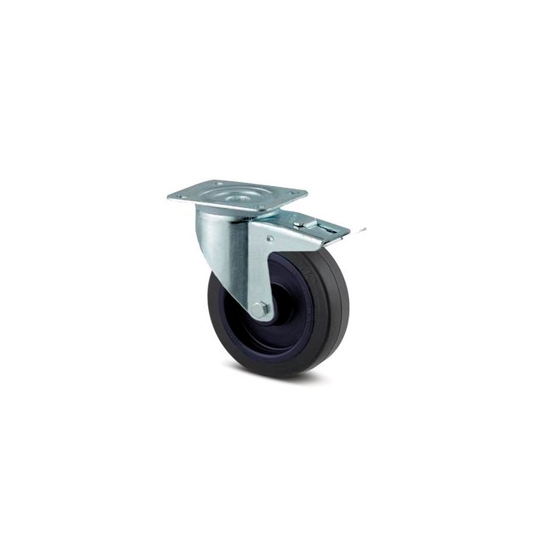 Professionel Flightcase 100 mm hjul med bremse, sort. Tente 100 mm hjul Drejeligt hjul med totalbremse, Gaffel af stål, zink-kromatiseret, drejekrans med dobbelt kuglekrans, hjul boltet fast i gaffel, Pladebefæstigelse.