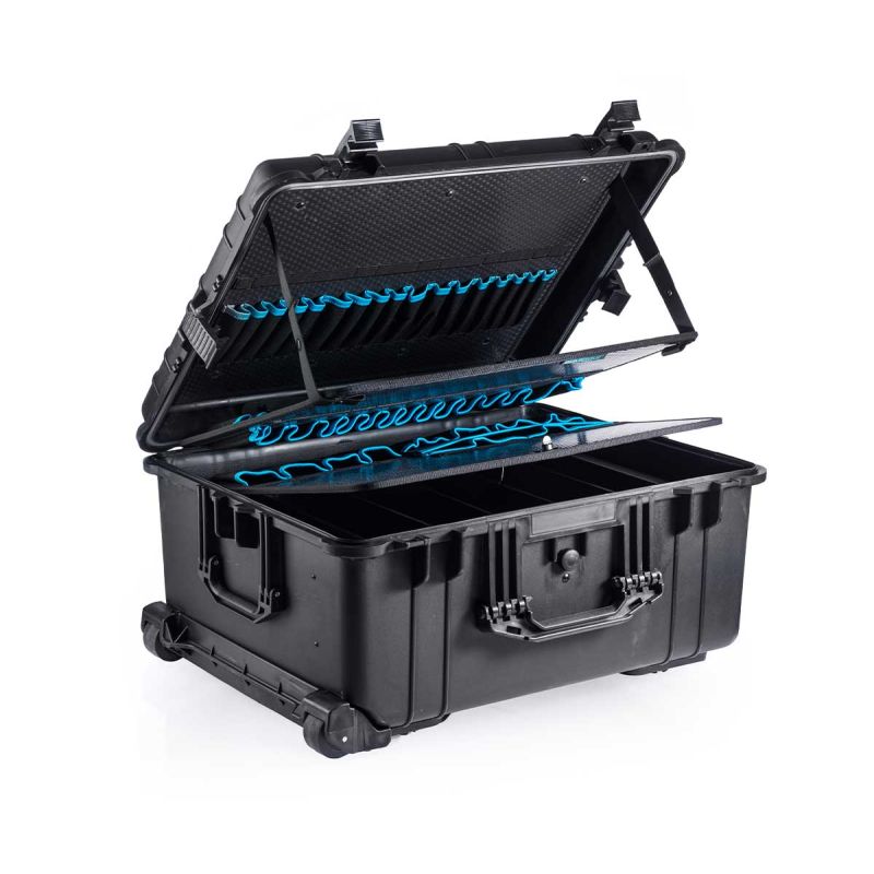GUARDIQUE Apollo 5013T is our own produced tool case based on a standard Apollo 5013. In our Apollo 5013T, we have fitted professional tool inserts, consisting of 2 single and 1 double tool inserts (all removable). Furthermore, there are strong adjustable dividers in the bottom, which can all be removed if you want one large compartment.