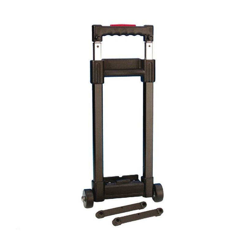 Removable Case Trolley with extendable handle on twin aluminium shafts and 50 mm castors on steel axle. Trolley clips into place onto plastic brackets (provided)